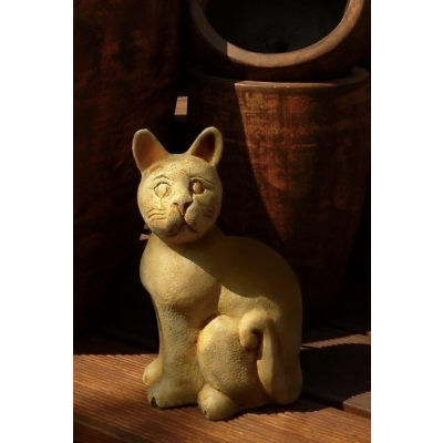Rzeźba kota siedzącego o wysokości 24 cm to stylowa dekoracja ogrodowa. Doskonale pasuje do ogrodu, na taras czy balkon, a także jako ozdoba we wnętrzach.